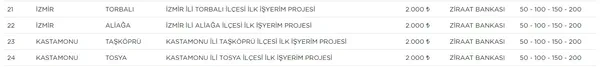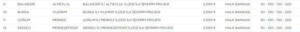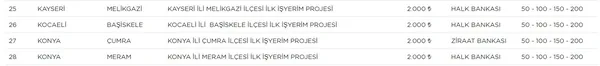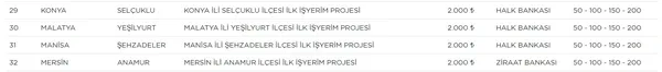 Giresun 2 bin, Gümüşhane 750, Hakkari 4 bin 200, Hatay 25 bin, Isparta 6 bin 750, Mersin 7 bin, İstanbul 50 bin, İzmir 25 bin, Kars 6 bin 500, Kastamonu 1750, Kayseri 25 bin, Kırklareli 11 bin, Kırşehir 12 bin 500, Kocaeli 1500, Konya 55 bin, Kütahya 12 bin, Malatya 12 bin 500, Manisa 18 bin, Kahramanmaraş 12 bin 500,