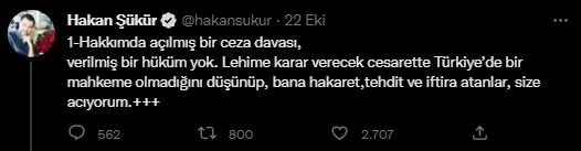 Türkiye'den ABD'ye kaçan Fetullahçı Terör Örgütü üyesi Hakan Şükür geçtiğimiz günlerde twitter adresinden hakkında açılmış herhangi bir ceza davası veya verilmiş bir hüküm olmadığını iddia etti. Şükür'ün bu söyleminin gerçeği yansıtmadığı zira Şükür hakkında İstanbul Adliyesi'ndeki 3 ayrı Sulh Ceza Mahkemesi tarafından tutuklamaya yönelik yakalama kararı bulunduğu ortaya çıktı.