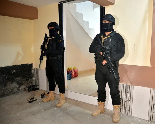 TEM ekipleri, demir kapılarını koçbaşlarıyla kırdıkları evlerde yaptığı aramalarda haklarında yakalama kararı bulunan çok sayıda şüpheliyi gözaltına aldı.