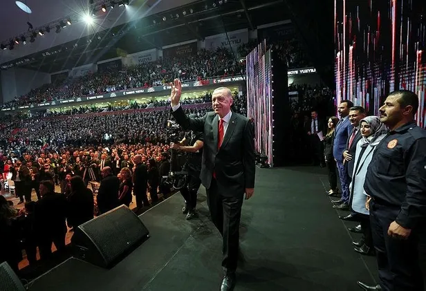 Başkan Erdoğan, "Geçtiğimiz 20 yılda, ülkemizde hizmet devrimini nasıl hayata geçirdiysek, Türkiye Yüzyılı ile birlikte, inşallah böyle bir zihniyet devrimini de gerçekleştireceğiz. Ülkesinin kazanımlarıyla gurur duyan, milli çıkarları her şeyin üstünde tutan, tehditler ve saldırılar karşısında tek yürek, tek bilek olan bir siyaset özlemimizin Türkiye Yüzyılı'yla hayata geçeceğini ümit ediyoruz." ifadelerini kullandı.
