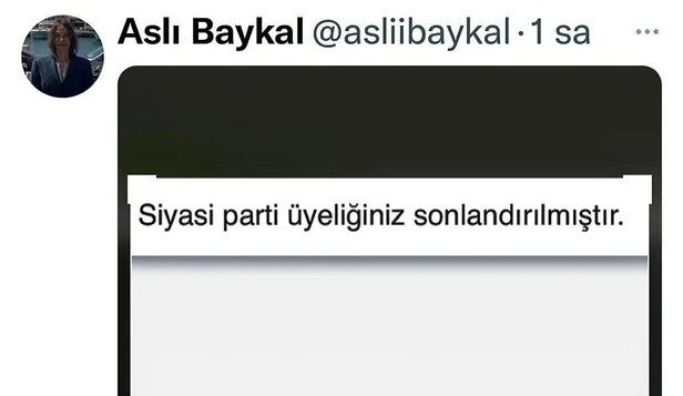 Baykal sosyal medya hesabından 'Siyasi parti üyeliğiniz sonlandırılmıştır' yazılı mesajı paylaştı.