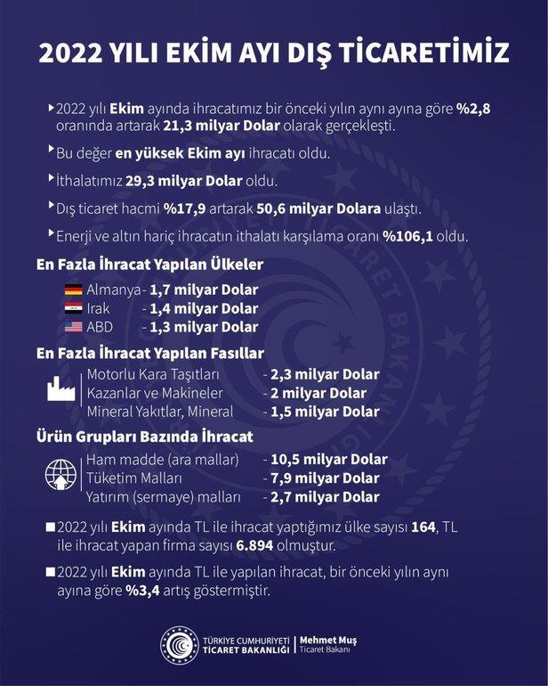 Öte yandan Ticaret Bakanı Mehmet Muş geçtiğimiz hafta ihracat rakamlarını da açıklamıştı.