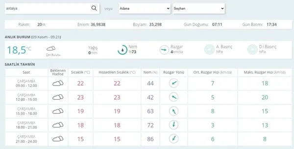 Meteoroloji Genel Müdürlüğünden alınan tahminlere göre, yurdun genelinin parçalı ve çok bulutlu, Doğu Akdeniz, İç Anadolu'nun doğusu, Orta Karadeniz kıyıları, Doğu Karadeniz, Doğu Anadolu'nun batısı, Güneydoğu Anadolu'nun güney ve batısı ile Sinop, Tokat, Erzurum, Ardahan, Van, Hakkari, Şırnak ve Diyarbakır çevrelerinin yağışlı, diğer yerlerin az bulutlu ve açık geçeceği tahmin ediliyor.