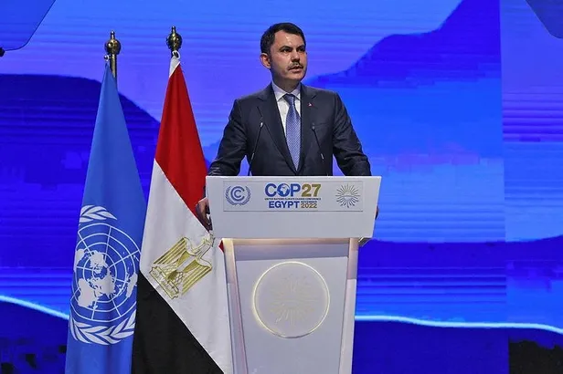 Çevre, Şehircilik ve İklim Değişikliği Bakanı Murat Kurum, Mısır'da düzenlenen BM İklim Değişikliği Çevre Sözleşmesi Konferansı'nda konuştu.