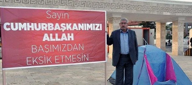 FETÖ/PDY üyelerinin CHP içerisinde bulunmasından duyduğu rahatsızlık sonucu Didim Cumhuriyet Meydanı'nda oturma eylemi başlatan Celal Kılıçdaroğlu, 'Sayın Cumhurbaşkanımızı Allah başımızdan eksik etmesin' ifadelerinin yer aldığı afiş açmıştı.