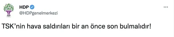 HDP Şırnak İl Eşbaşkanı Abdullah Güngen ise PKK/YPG'ye yönelik operasyonlara "işgal" ithamında bulundu.