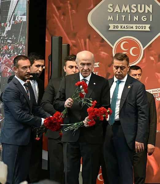 Son dakika haberleri... MHP Lideri Devlet Bahçeli Aday Belli Karar Net mitingi kapsamında Samsun'da önemli açıklamalarda bulundu. Bahçeli, 6'lı masanın henüz aday çıkaramamasını eleştirerek "Her birinde gizli ajanda var" ifadelerini kullandı. Kılıçdaroğlu'nun borsa yalanına da tepki gösteren Bahçeli, "Kılıçdaroğlu'nun yolu namertlik yoludur." şeklinde konuştu. Dün gece başlayan Pençe - Kılıç Hava Harekatı'na desteğini de bildiren Bahçeli, "Vakit, dökülen kanların hesabını damla damla sorma vaktidir" dedi. Öte yandan İstiklal Caddesi patlaması üzerinden algı operasyonları yapan CHP ve İYİ Parti'ye de tepki gösteren Bahçeli, "PKK'yı korkutmamak için milletimize hakaret etmekten çekinmiyorlar" diye konuştu.