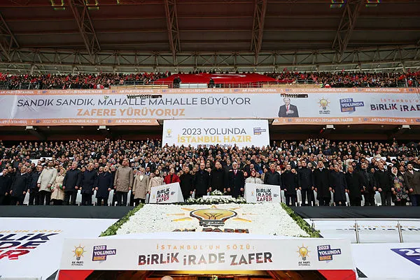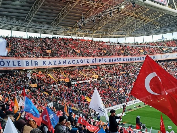 Son dakika haberleri... Başkan Erdoğan AK Parti İstanbul İl Başkanlığı tarafından Nef Stadyumu'nda düzenlenen "İstanbul'un Sözü: Birlik, İrade, Zafer" programında önemli açıklamalarda bulundu. Statta 96 bin kişinin bulunduğunu söyleyen Erdoğan, ilçe teşkilatlarına talimat verdi. Erdoğan, "Seçime kadar her haneyi 2 kez ziyaret ederek sahada en küçük bir boşluk bırakmayacağız. Bu programın ilk turunu Ocak ayına kadar tamamlamayı planlıyoruz" dedi. Erdoğan, 6'lı masaya göndermede bulunarak "Birileri yuvarlak masanın etrafında dönedursun biz sahayı emekle, kalple, azimle, fedakarlıkla ilmik ilmik örerek kendi işimize bakacağız" ifadelerini kullandı.