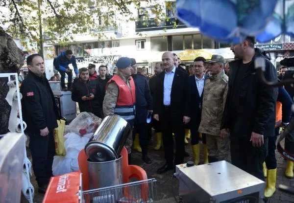 Öte yandan, Bakan Soylu, aynı mahalledeki ziyaretlerinde çay ocağı selden zarar gören Vedat Sarıyer ile görüştü, geçmiş olsun dileklerini iletti.