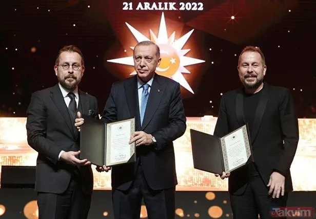 Başkan Erdoğan, konuşmasının ardından ödüle layık görülen Ajda Pekkan, Süleyman Saim Tekcan, Yılmaz Erdoğan, Hayreddin Karaman, Varol Yaşaroğlu, Ömür Akkor, Yunus Emre Akkor, Tan Sağtürk, Hilmi Şenalp ve Sevan Bıçakçı'ya ödüllerini takdim etti.