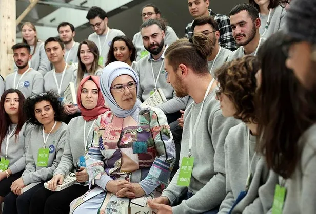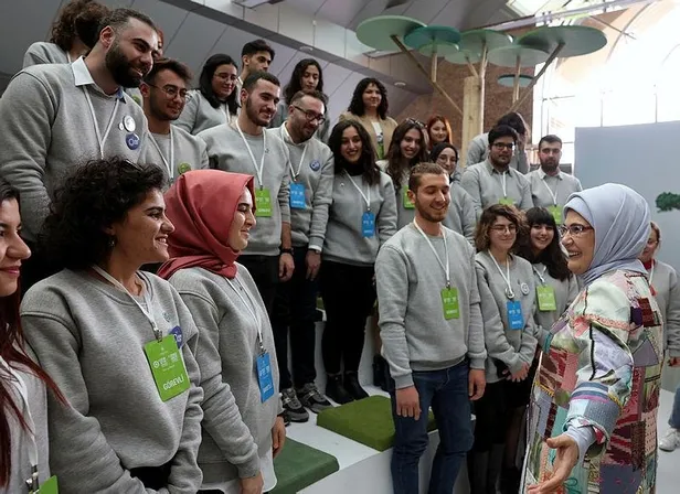 İklim elçisi gençlerle de sohbet eden Erdoğan, gençlerin yürüttüğü projeleri dinledi, ardından gençlerle alkışlar eşliğinde salona girdi.