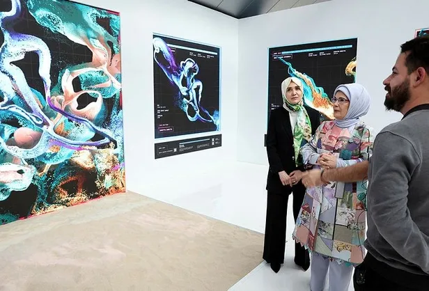 Emine Erdoğan, Çevre, Şehircilik ve İklim Değişikliği Bakanlığının caretta carettaları korumak için yürüttüğü takip sisteminin dijital ortama yansıtıldığı sergiyi de gezdi. Caretta carettaların yolculuklarının, oluşturulan üç boyutlu görsellerle izlenime sunulduğu sergide, iklim değişikliğiyle mücadelede doğadaki tüm canlılara sahip çıkılması mesajı verildi.