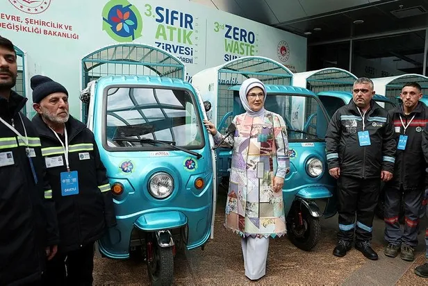 Zirvede sokak toplayıcılarına Çevre, Şehircilik ve İklim Değişikliği Bakanlığı tarafından elektrikli araç hediye edildi. Sokak toplayıcılarıyla bir araya gelen Emine Erdoğan, her birine emekleri için teşekkür ederek, çekçeklerin yerine elektrikli araçları verdi.