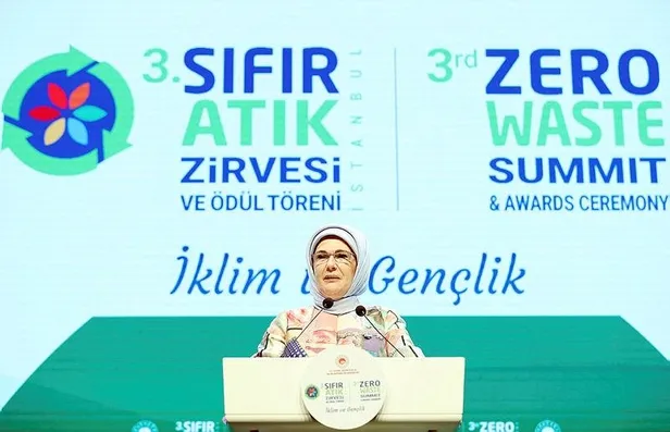Emine Erdoğan, "Sıfır Atık Zirvesi bu sene 'iklim ve gençlik' gibi çok kıymetli bir tema altında düzenleniyor. Yeryüzü emanetini devralacak gençlerimiz ve çocuklarımızın olmadığı bir mücadelenin başarıya ulaşması mümkün değildir." dedi.
