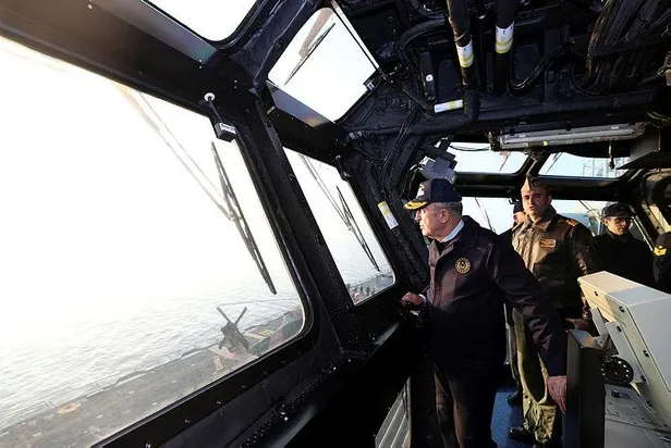 Donanma Kurmay Başkanı Tuğamiral İsmail Güldoğan'dan gemiye ilişin brifing alan Akar daha sonra köprüüstüne çıkarak incelemelerde bulundu.