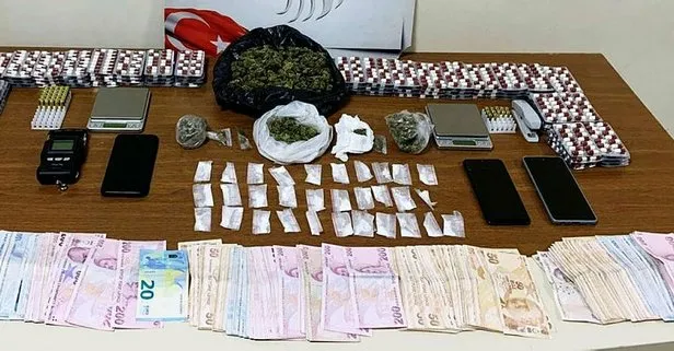 Takip sonrası şüphelilerin adreslerine operasyon yapıldı. Polisin aramasında 2 hassas terazi, 300 gram esrar, 26 gram kokain, 1570 sentetik uyuşturucu hap ve uyuşturucu madde satışından elde edildiği tahmin edilen 27 bin 300 TL, 20 euro ve 6 dolar ele geçirildi.