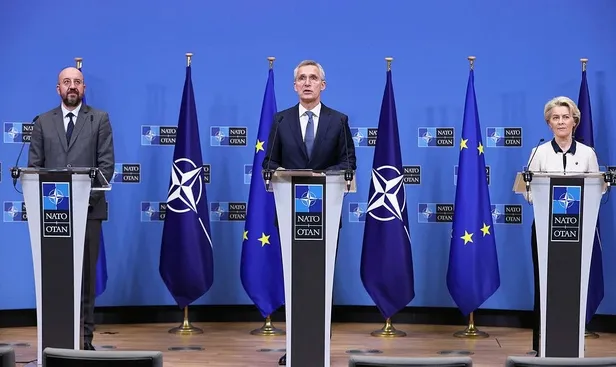 NATO Genel Sekreteri Jens Stoltenberg, NATO ile AB arasındaki işbirliği konulu ortak deklarasyonun imza töreninden sonra AB Konseyi Başkanı Charles Michel ve AB Komisyonu Başkanı Ursula von der Leyen ile ortak basın toplantısı düzenledi.