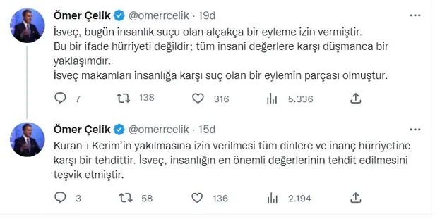 AK Parti Sözcüsü Ömer Çelik de ırkçı Rasmus Paludan eliyle İsveç'te sahnelenen alçak provokasyona iliişkin açıklama yaptı.