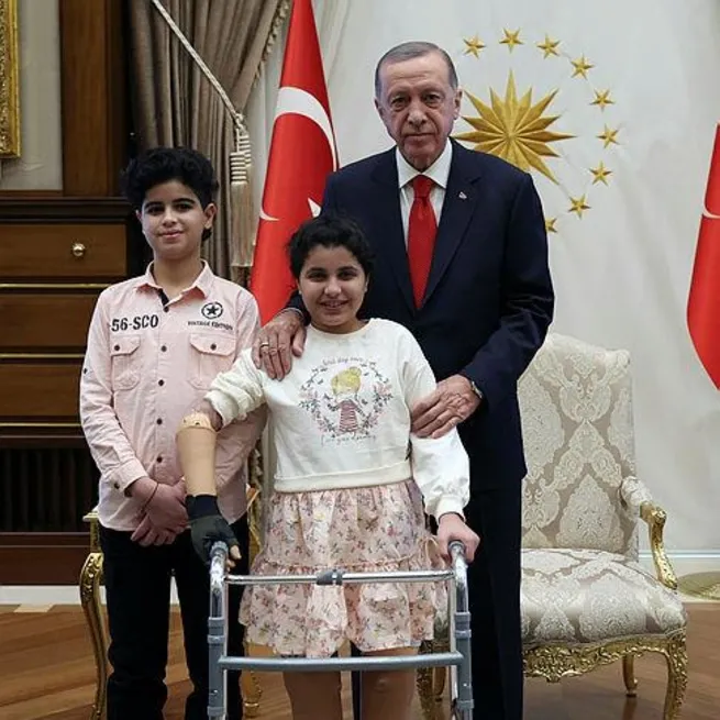Erdoğan önce, İsrail füzeleriyle yaralandıktan sonra Türkiye'de tedavi edilen Filistinli 11 yaşındaki Rahaf ile 13 yaşındaki ağabeyi Muhammed Halil Salman'ı kabul etti.