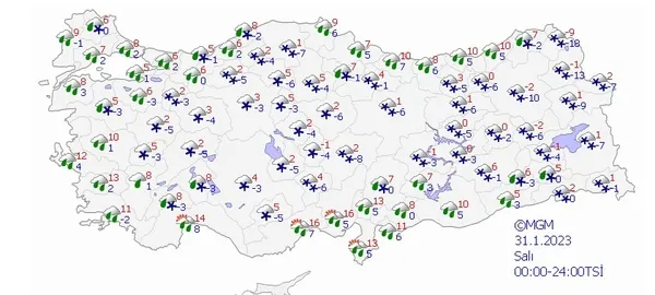 31 OCAK 2023 SALI TÜRKİYE GENELİ HAVA DURUMU