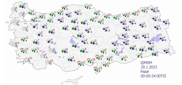 29 OCAK 2023 PAZAR TÜRKİYE GENELİ HAVA DURUMU