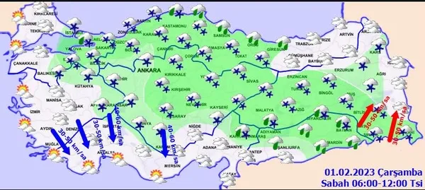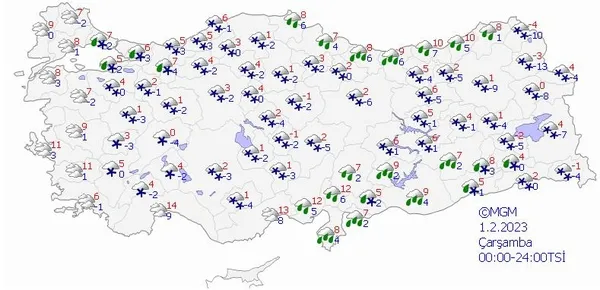 1 ŞUBAT 2023 ÇARŞAMBA HAVA DURUMU