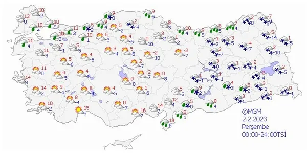 2 ŞUBAT 2023 PERŞEMBE HAVA DURUMU