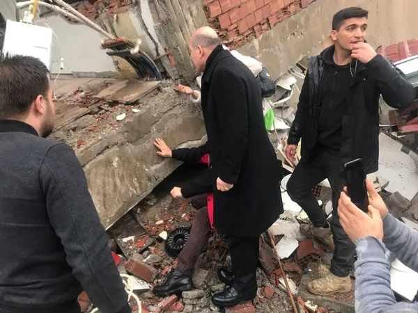 Kahramanmaraş'a gelen Bakan Soylu, beraberindeki Mehmet Aktaş, Jandarma Genel Komutanı Orgeneral Arif Çetin ile depremde hasar gören ve yıkılan binalardaki arama-kurtarma faaliyetlerini inceledi.