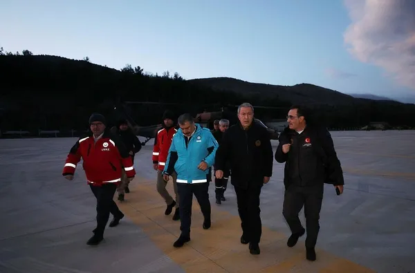 Milli Savunma Bakanı Hulusi Akar da beraberindeki Genelkurmay Başkanı Orgeneral Yaşar Güler ve Kara Kuvvetleri Komutanı Orgeneral Musa Avsever ile deprem bölgesine hareketinden önce 11'inci Hava Ulaştırma Ana Üs Komutanlığındaki çalışmaları inceledi.