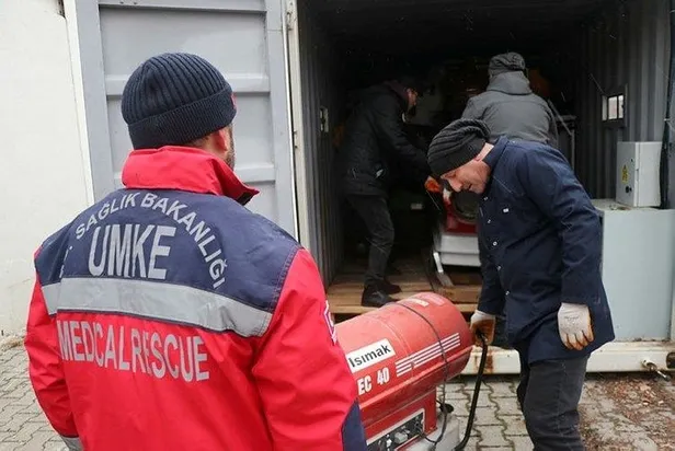 Çalışmalara katılacak UMKE ve sağlık personelinin konaklama çadırları ve ısıtma sistemleri yüklü 2 konteyner de bölgeye gönderildi.