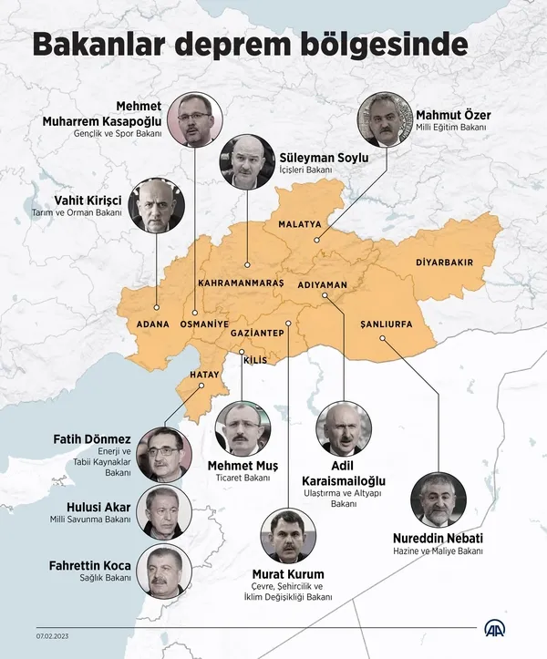 İşte deprem bölgesinde göreve koşan bakanlar: