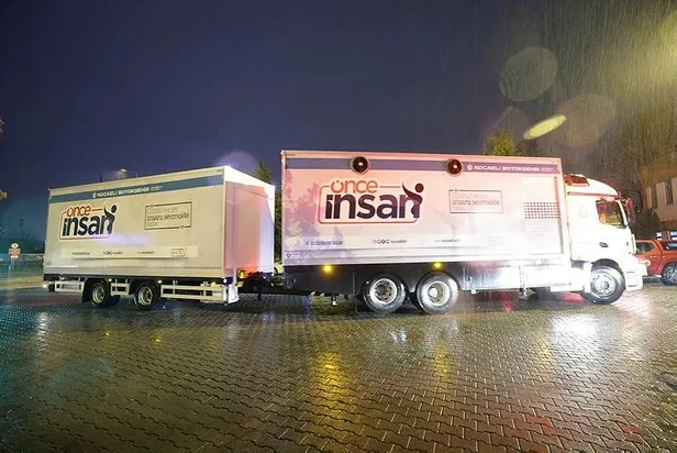 Kentten 18 personelle yola çıkan, yemek ve ekmek aracından oluşan mobil afet tırlarında, 2 ton temiz su tankı, 1 ton atık su tankı, dışarıya bağımsız olarak 5 gün çalışabilecek jeneratör bulunuyor.