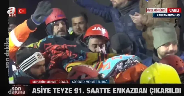 Kahramanmaraş'ta 67 yaşındaki Asiye Sümbül 91 saat sonra enkazdan çıkarıldı.