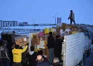Tasnif ve kolilemenin ardından yardımlar, tırlara yükleniyor. TIR'ların yerine yenisi yanaşıyor ve malzemeler yine gönüllüler tarafından taşınıyor. Malzeme yüklenen TIR'lar daha sonra AFAD'ın koordinasyonunda depremzedelere dağıtılmak üzere yola çıkıyor.