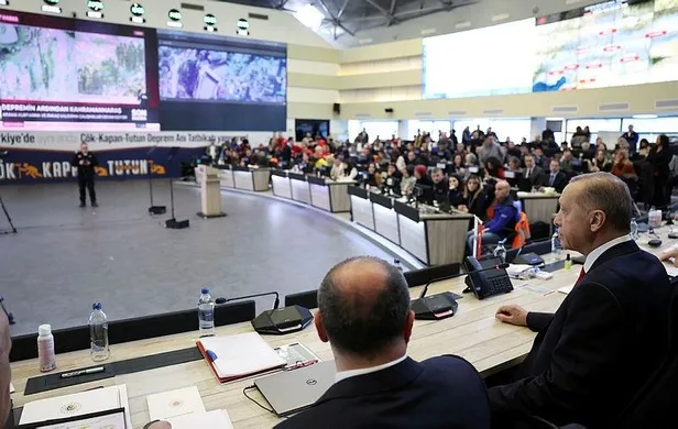 Başkan Erdoğan, Afet ve Acil Durum Yönetimi Başkanlığı (AFAD) Merkez Binası'ndaki Kabine Toplantısı öncesi AFAD Koordinasyon Merkezi'ndeki görevlilere hitap etti.