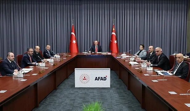 Kahramanmaraş merkezli depremlerin koordine edildiği AFAD Merkez Binası'ndaki Kabine Toplantısı, saat 15.20'de başladı.