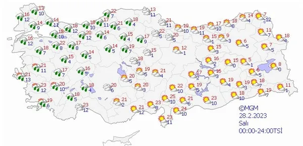 28 ŞUBAT 2023 SALI TÜRKİYE GENELİ HAVA DURUMU