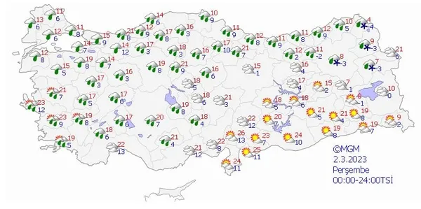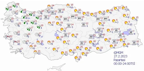 27 ŞUBAT 2023 PAZARTESİ TÜRKİYE GENELİ HAVA DURUMU