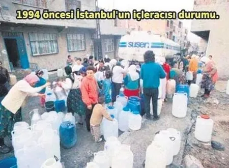 Su verilince de, çeşmelerden önce çamurlu su akardı! Bizim çocukluğumuz çeşme başlarında su kuyruklarında geçti! O zamanlar İstanbul'un nüfusu 6,5 milyondu! Şimdi ise 16 milyon!