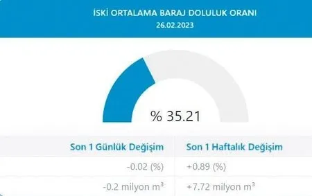 İstanbul'a su sağlayan barajlardaki doluluk oranı dün yüzde 35.21 seviyesindeydi. Geçtiğimiz yıl aynı gün bu seviye yüzde 80'di.