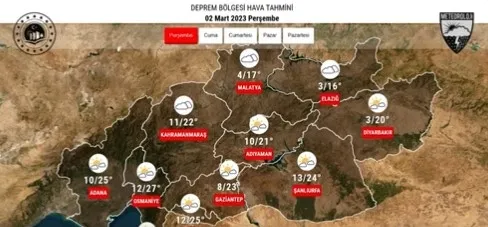 Meteoroloji Genel Müdürlüğü 1 Mart hava durumu raporunu yayımladı. 5 günlük yeni uyarıda Marmara Bölgesi gök gürültülü sağanak yağış ve toz taşınımı uyarısı yapılırken deprem bölgesi için de soğuk hava ve yer yer yağmur etkili olacak.