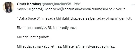 Kılıçdaroğlu'nun her fırsatta adaylığını dayatması ve İYİ Parti Genel Başkanı Meral Akşener'in "kazanacak aday" vurgusuyla kabul etmemesi 6'lı masanın kısa sürede dağılacağını bize gösteriyordu.