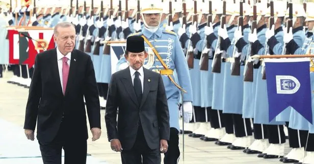 Başkan Tayyip Erdoğan, dün Sierra Leone Cumhurbaşkanı Julius Maada Bio'yu Cumhurbaşkanlığı Külliyesi'nde ağırladı. Bio, deprem nedeniyle geçmiş olsun dileklerini paylaştı. Erdoğan daha sonra Brunei Darusselam Sultanı Haji Hassanal Bolkiah Mu'izzaddin Waddaulah'ı resmi törenle karşıladı. Brunei Sultanı Waddaulah, Muhafız Alayı Tören Kıtası'nı "Merhaba asker" diyerek Türkçe selamladı. Törenin ardından iki ülke arasında karşılıklı anlaşmalar imzalandı.