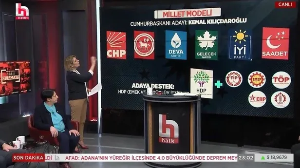 Kılıçdaroğlu'nun adaylığı konu başlığında yapılan yayında "Millet Modeli" adı altında CHP, İYİ Parti, DEVA, Gelecek, Demokrat, Saadet'in logolarının yanında HDP, TİP vb. partilerin logolarına yer verildi.