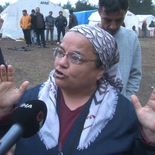 Kemal Kılıçdaroğlu'nun konuşma yapması için depremzedelerin yağmurda sığındığı çadırın alınmak istendiğini söyleyen Sude Çalışkan isimli depremzede,"Bir aydır suyumuz yok. Karataş Mahallesi, Kırıkhan Çarşı olsun, bir gün sadece akşamları olmak üzere su veriyorlar. Haftanın 2 günü 3 günü suyumuz yok, çamaşırlar yığılmış. Hatsu, Büyükşehir Belediyesi, CHP başka da sorumlusu yok. Eşim kanser hastası, bir ay önce nakil oldu, şu an çadırda kalıyor. Kemal Bey, gelmiş içeride konuşuyor ama buradaki insanlar hiç umurunda değil. 3-5 kişiyi sabahtan beri etraflarına topladılar, sırf konuşma yapsınlar diye. İçeriye geçtiler, buradaki insanlar ne diyecek, ne isteyecek hiç umurlarında değil. Sabahtan beri buradayız. Yaklaşmamızı istemediler ama kendilerine konuşacak kişileri buldular ve içeri geçirdiler. Şu an buraya Kemal Bey gelmiş, ne konuşacak bir çadırı var, ne bir kürsüsü var, hiçbir şeyi yok. Bizim burada sığındığımız küçücük çadırı elimizden almaya çalıştılar, biz de vermedik. Bu yağmurda sığındığımız küçük bir çadır var, sabahtan beri onu elimizden almaya çalışıyorlar" dedi.