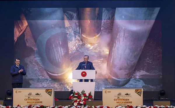 Erdoğan, "Projedeki personelimizin, depremzedelerin yardımına koşması sebebiyle yaşanan gecikmeye rağmen Karadeniz gazını yakında milli sisteme bağlıyoruz." dedi.