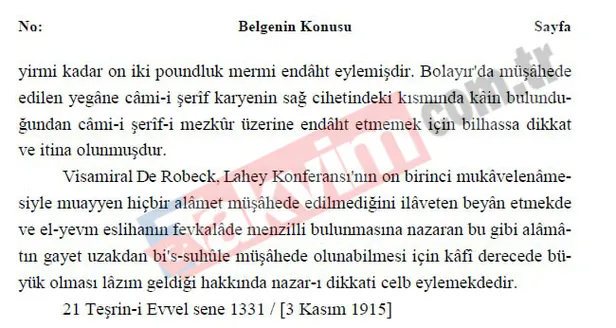 İngilizler Bolayır'daki Süleyman Paşa Türbesi'ni kasten bombalamış, Osmanlı İmparatorluğu tarafından verilen notaya da cami ve türbeleri hiçbir zaman kasten vurmadıkları yalanıyla savunma yapmışlardı. Belgede İngilizlerin yalanı şöyle anlatıldı: