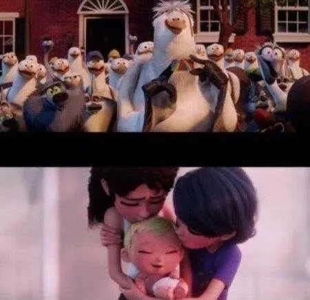Sinemalarda ailecek izlenen (ayrıca Netflix'te de yayınlanan) Leylekler çizgi filminin sonunda leylekler, eşcinsel çiftlere de çocuk getiriyordu.