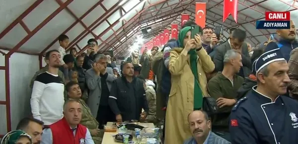 Başkan Erdoğan, 6 Şubat'ta meydana gelen Kahramanmaraş merkezli depremlerden etkilenen Adıyaman'da, İpekli-3 Otogar Konteyner ve Prefabrik Kent'teki depremzedelerle iftar yaptı.