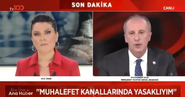 Ece Üner'in ise TV100 ekranlarına davet ettiği Muharrem İnce'nin vermiş olduğu karardan memnuniyetsizliği yüzünden okunuyordu.